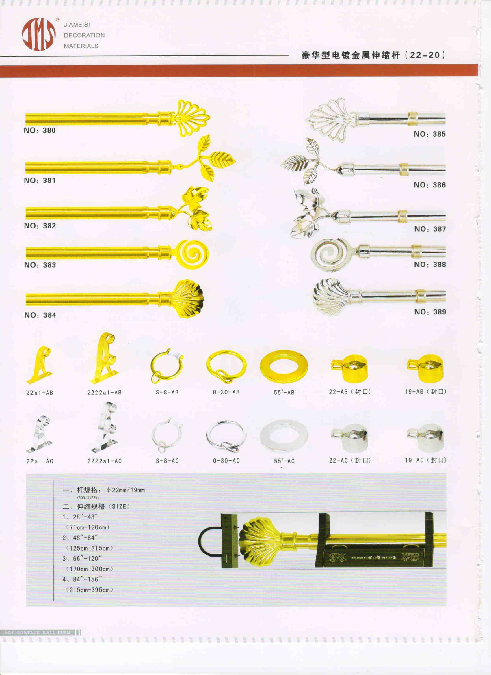 Electroplate Metal Cafe Rod (Luxury) 豪華型工藝漆金属伸縮杆 (22-20)