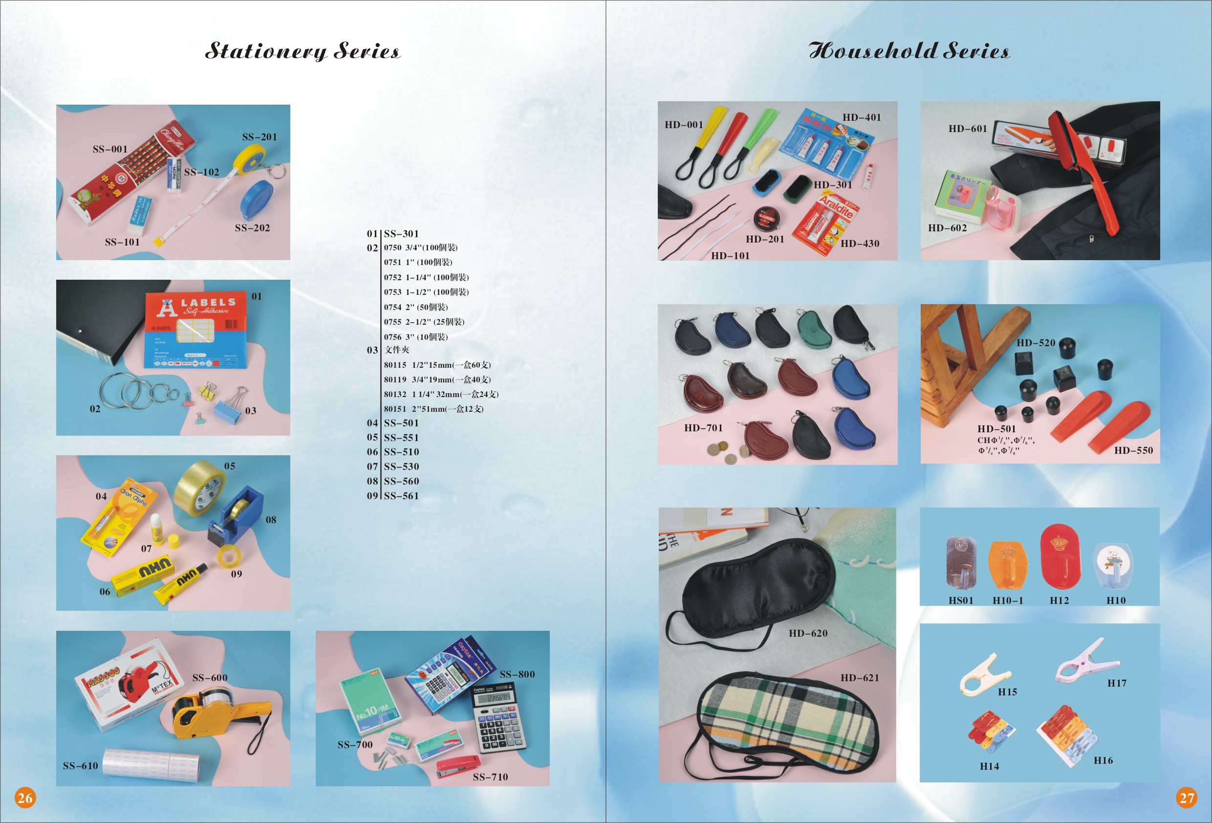文具, 衣夾, 鞋油, 銀包, 眼罩