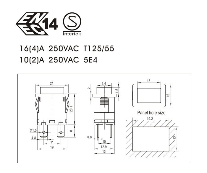 16(4)A 250VAC T125/55
