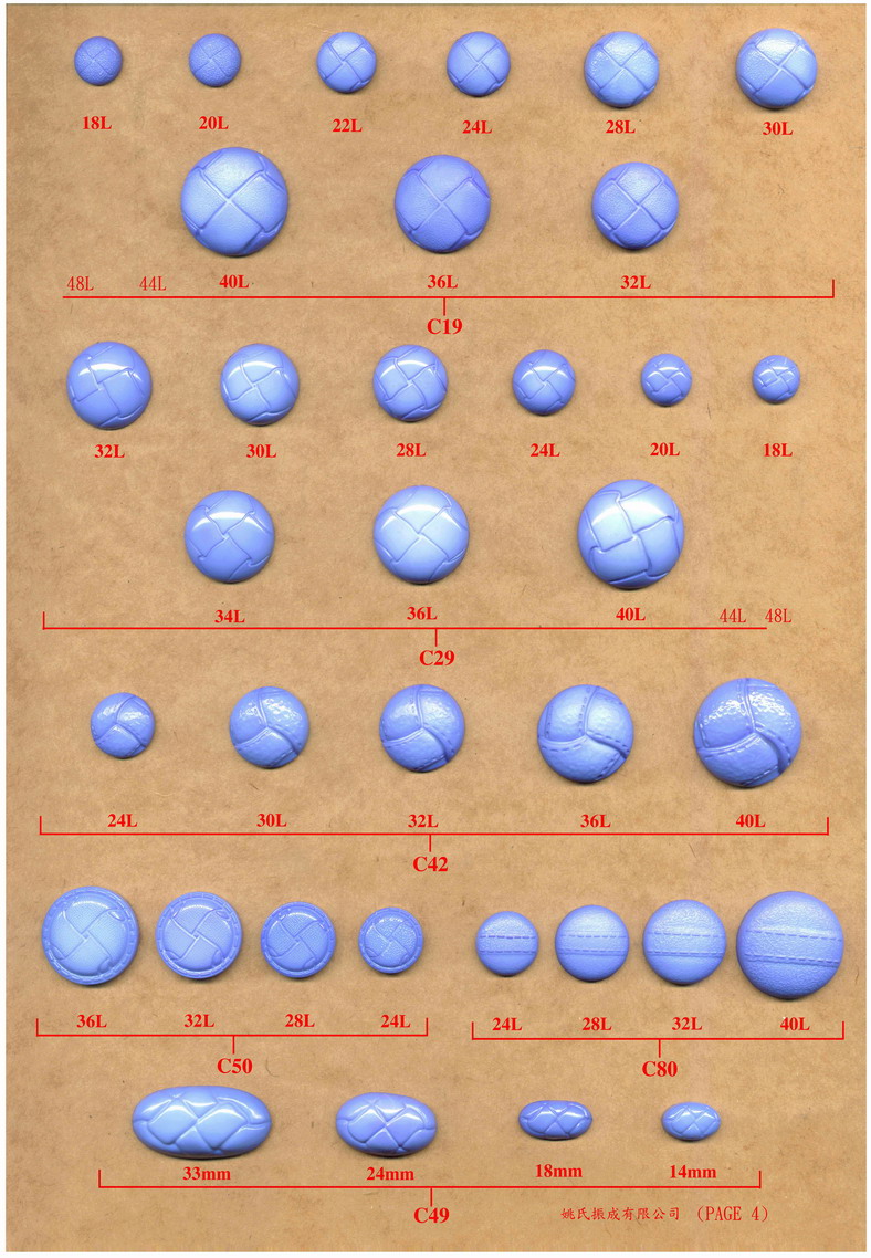 C19  18L 20L 22L 24L 28L 30L 32L 36L 40L 44L & 48L    Nylon Shank Button 尼龍仿皮鈕