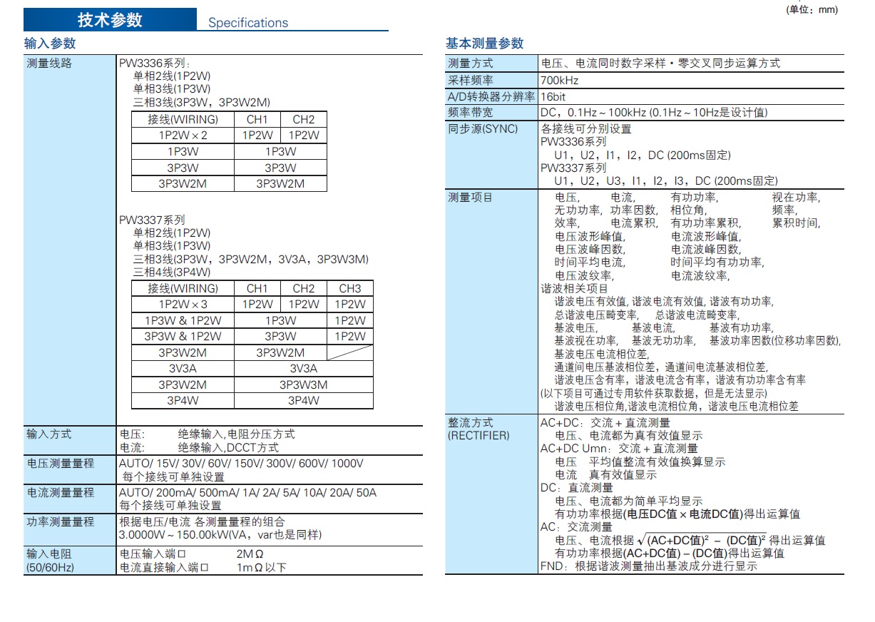 File Name : Hioki-PW3336 or PW3337 Spec.jpg