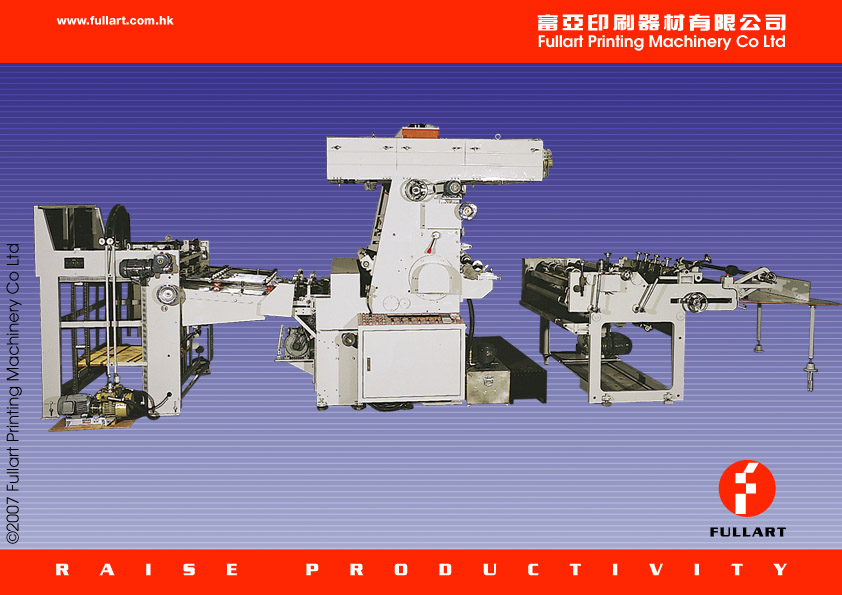 全自動油性PP薄膜貼合機 - 功 能: 1.新型送紙機採用真空邦浦吸送紙;送紙穩定噪音小,川流式的結構使工作進行能以不停機、不浪費P.P.膜,既省時又省力。 2.特殊的紙張校對機械結構(哈哩)適合各式大小、厚薄的紙張輸送和規位精准的貼合;使品質精美且操作簡易迅速又準確。 3.塗布系統以單邊調整控制,確使油量能均勻塗布,並以馬達控制自動上膠及卸膠,方便作業。 4.乾燥設備使用新式熱風設計和溫室結構,能使P.P.膜在最短時間內迅速的達到乾燥效果;而且此機是因所開發之機種,在極狹窄的空間中,即可置放此機器生産,以求降低營業成本。 5.自動切紙機其轉刀和拉輪能精確分開及撕開貼合的紙張,並以高耐磨皮帶來傳送紙張,以利加裝自動收紙機的需求。 6.本機採用無定點式離合器輸送紙張,可自行決定送紙時間,減少紙張的浪費。 7.本機採用電子迴路設計,運轉速度可控制自如,低噪音、故障率低,是部精心創造的産品。